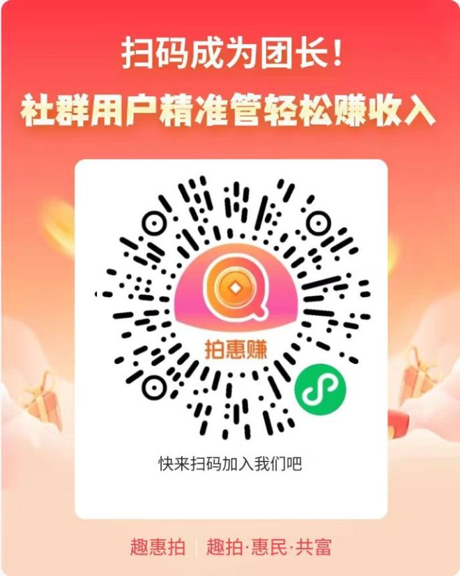 趣惠拍是快消品竞价+社交电商融合平台,将商品定价权交给消费者,旨在让消费者能够低价参拍商品。拍到省钱,拉动消费,加价分佣,拍不到赚钱。让想赚钱的居民群体通过推广运营能够获得收入。通过推广渠道、团长等岗位角色拉动社会就业,实现”趣拍·惠民·共赢”的企业愿景。