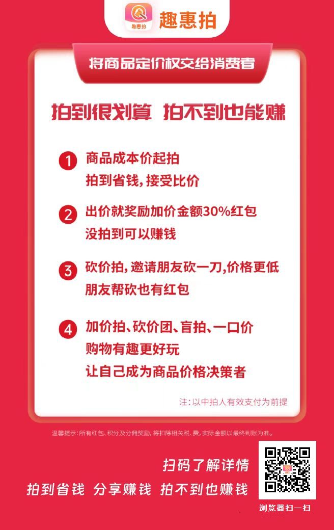 趣惠拍没有用套路收割用户,而是把定价权、利润空间还给大众,让消费变得公平、透明、有价值。