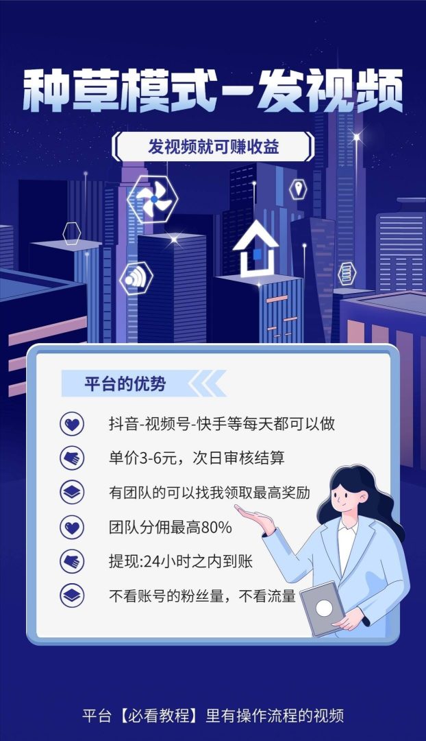 【重磅】全新视频种草平台上线!发视频就能领钱,无需自己拍摄制作,一键领取发布即可!