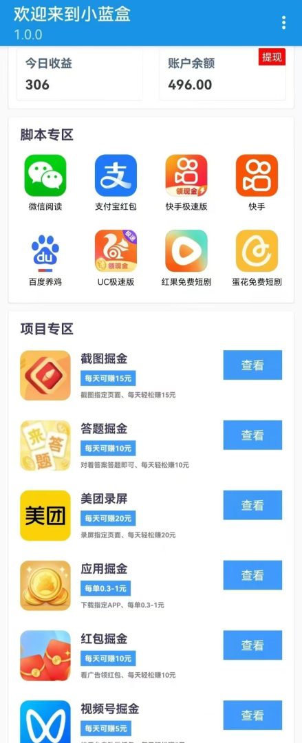 【小蓝盒脚本助手APP】你的手机赚钱利器,正在持续更新各类实用脚本与零撸项目。重点是,外面那些卖几十上百块的教程和项目,在小蓝盒里全都免费开放!