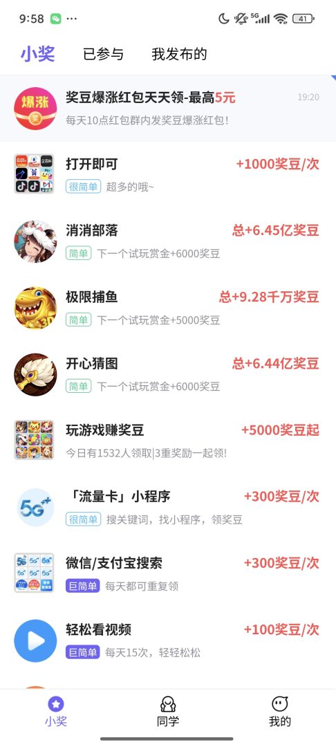 全新平台小奖同学 App正式与大家见面,为回馈新用户,平台准备了丰厚的新人见面礼: