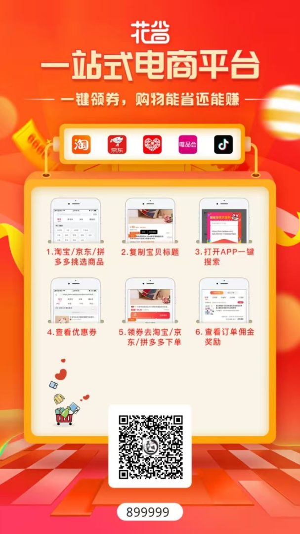 - 安卓用户: 应用宝/各应用市场搜索”花省”,填写官方邀请码899999
