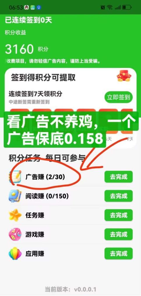 这2天刚出来的新橡木:数影时代,看一条广告固定0.158元,一天可以看35条广告,每天保底5-6元左右,满1元就能提线,24小时内到账。一个wifi可以3个号,可以一家人来玩。