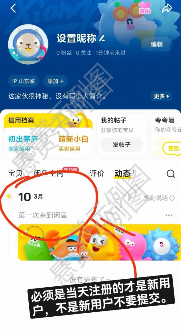 (!!!这里敲黑板:必须是没有注册过闲鱼的新号才行!)