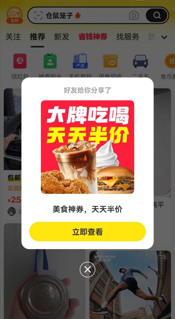 口令复制到闲鱼就可以了。