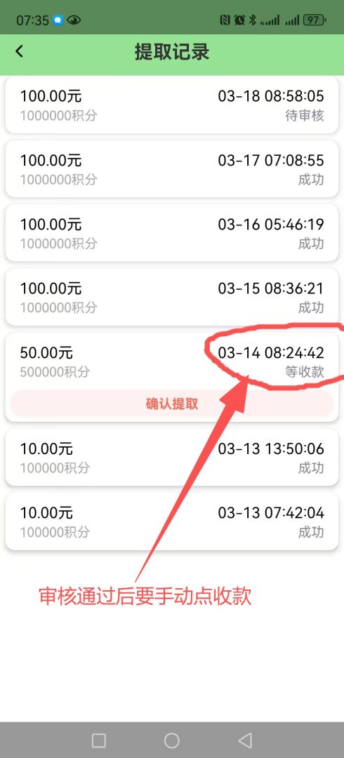 数影时代提现审核通过后,用户需手动点击收款,收益将快速到账微信。平台提现门槛低,24小时内即可到账,平台运行稳定,提现安全可靠,是一款适合长期挂机赚钱的项目。