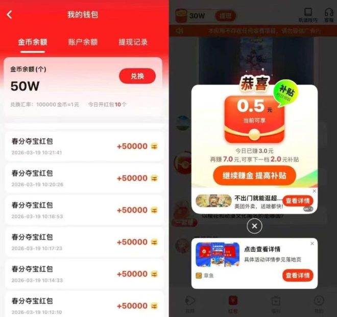 春分夺宝是刚上线的零撸广告赚钱平台。保底收益设置很高,目前正在放水期,拉新奖励丰厚。邀请好友每天能赚上百元,支持苹果和安卓双端使用。新品上线有视频教程指导操作。