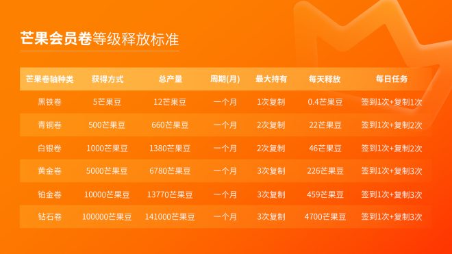 2.开通会员:认证成功即送黑铁卷,30 天释放 12 颗芒果豆,直接兑换任务,解锁全部会员权益!