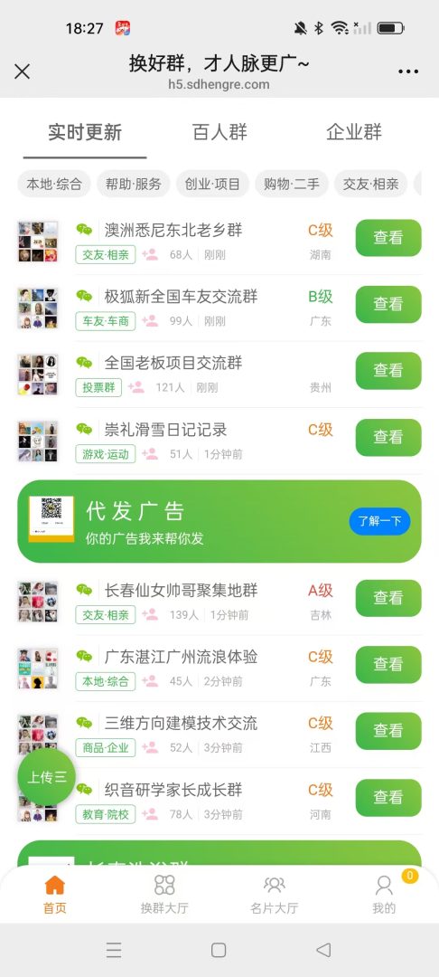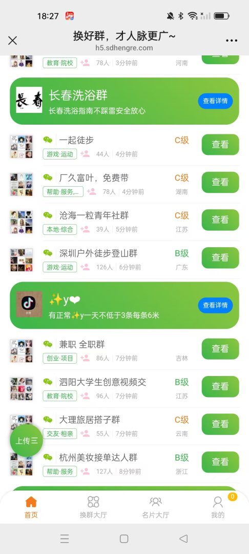 人脉圈 这个平台,微信群资源每天更新1000多个群,分类非常齐全。遇到节假日,群里经常有人发红包,还能领红包,感觉真不错。平台每天更新上千个群,每月总共能提供5万个群资源,覆盖宝妈群、创业群、副业群等各类需求。