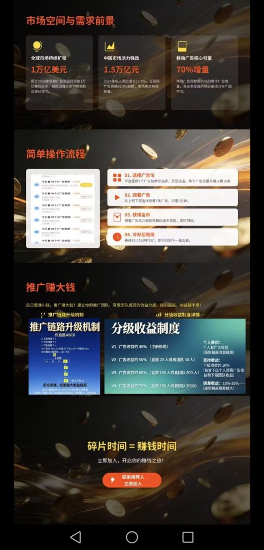 【重点,大水时间很给力】前15天释放100%收益。平台不抽成。大家可以卖力刷广告,收益很高的。