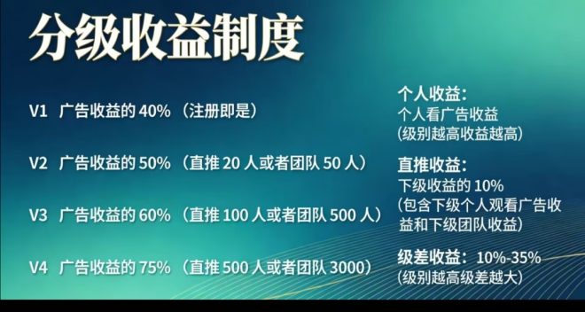 上线后释放收益100%,单条广告可达1-10米。外面盘子顶包最多给你1米,我们顶包可达10米,无论做团队还是自己撸收益都爽到飞起!