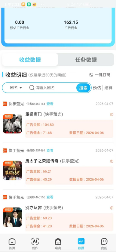 内容撮合与推广:平台提供海量的短剧推广任务,帮助用户将创作内容精准对接给需要的商家或品牌。