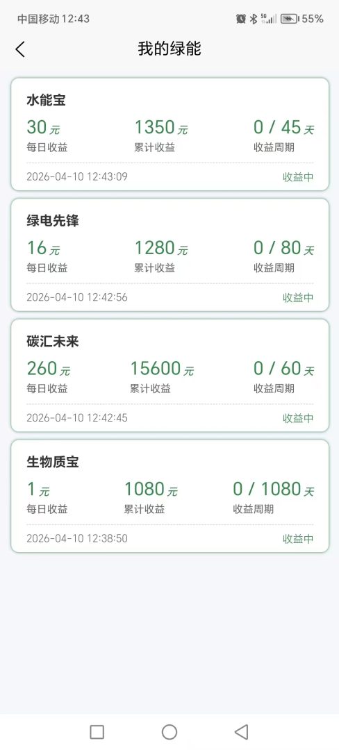 绿色环保每天都是自动赚模式,零门槛直接加入绿电计划,每天最低能收210元的收益,全程不需要你花一分钱投资,连手动操作都省了。