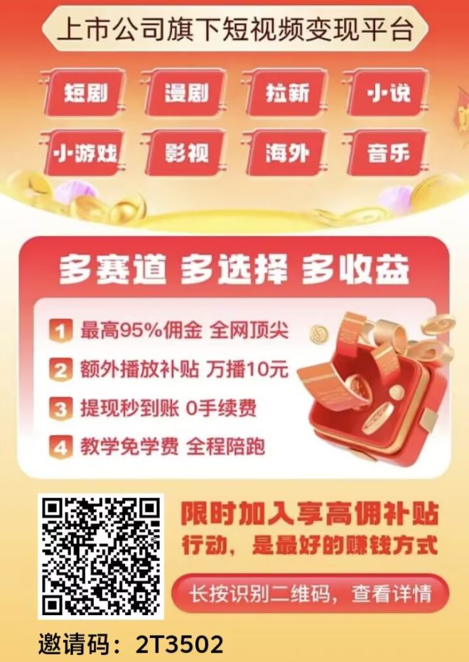 上市公司平台兜底,短剧自刷,软件内部有自动剪辑功能,全程Ai制作,只需人工发布即可,整体操作没有难点,基本一看就可上手实操,不仅可以获得收益,还可以涨粉,一举多得。