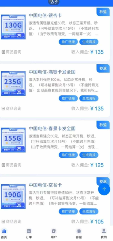 平台所有产品都有秒返电信首冲50秒反150联通首冲50秒反120移动首冲50秒反120