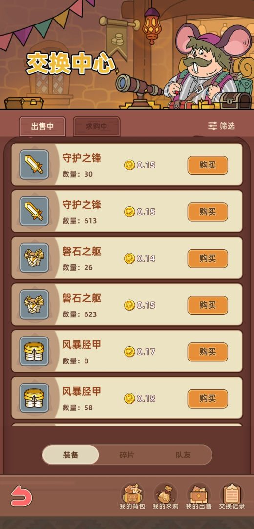 ②内置的交易所可以交换装备、队友等等道具,自由定价,高效互通流转。