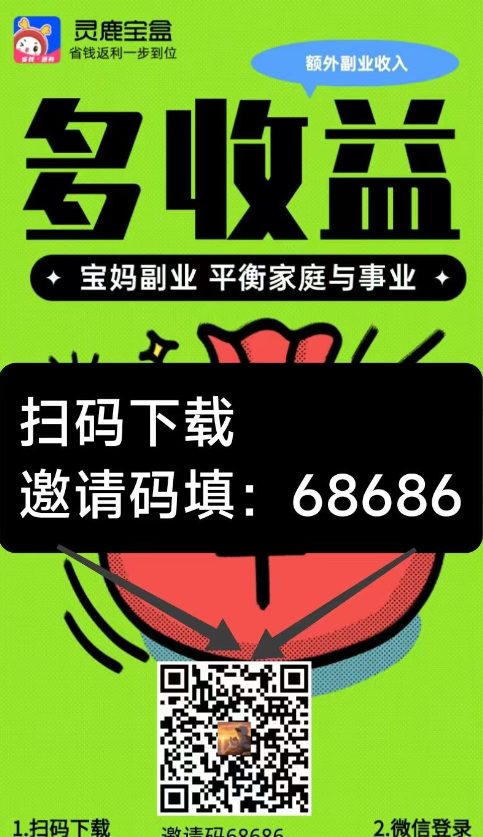 灵鹿宝盒邀请码:68686,兄弟姐妹们最近发现一个超实用的省钱神器,必须跟你们分享,就是这个,我已经用了一个月了,真的帮我省了不少钱,还赚了点零花钱。