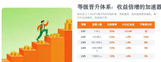 四、LV1–LV5 等级体系,越做越赚 等级越高,权益越丰厚: