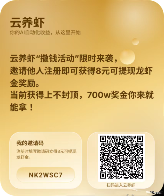 养虾注册就领8元可提现龙虾金,每日免费盲盒100%中奖,零撸网赚新项目,手机零投资网赚小项目。