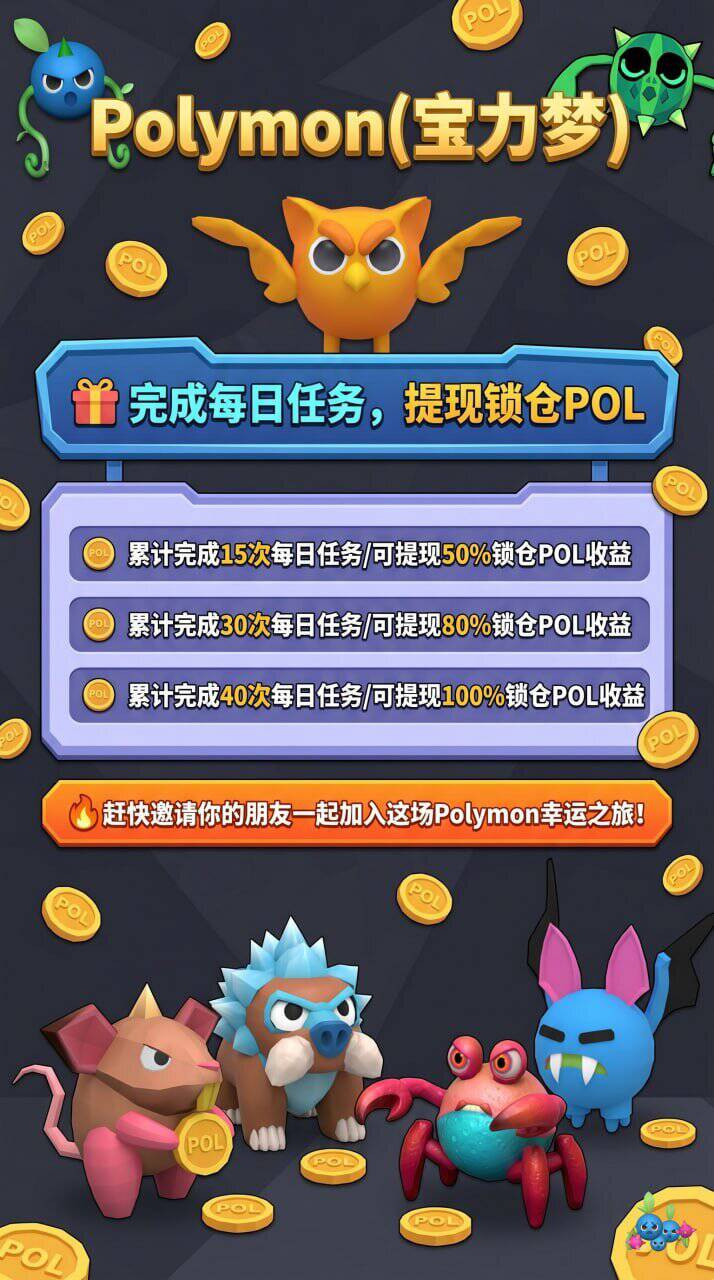 Polymon(宝力梦)全球首发!零撸链游天花板,稳定收益,轻松变现