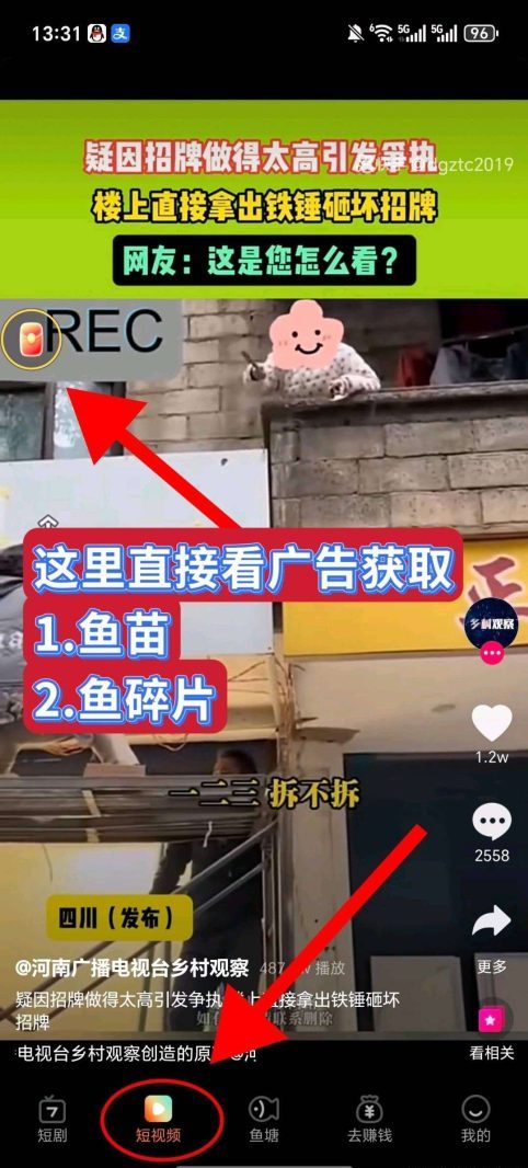 1.看广随机获取鱼苗或者鱼碎片