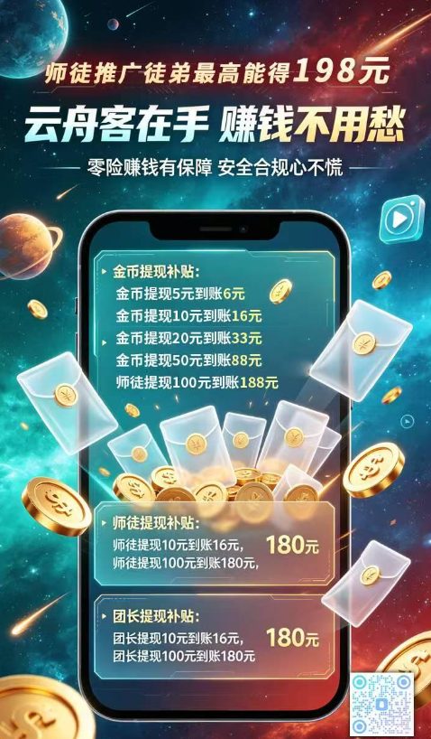 新台子云舟客今天新出零撸广告赚,单机每天30+,手机零投资网赚小项目。