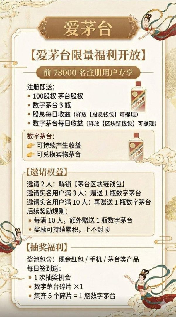 爱茅台零撸实名正反送100茅台股权加数字茅台3瓶,手机零投资网赚小项目。