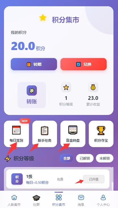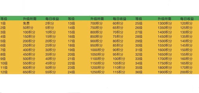 每天免费领取等级对应的积分(无限制/天数/转赠/兑换)