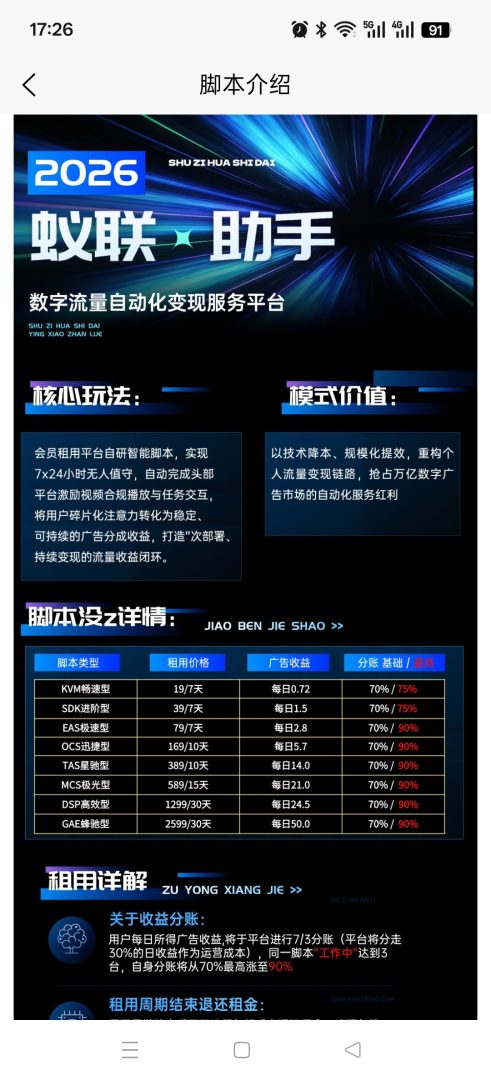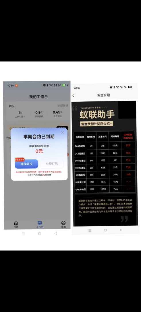 注册后简单实铭,送体验机一台,日产0.72,3天周期,新人0.5起提