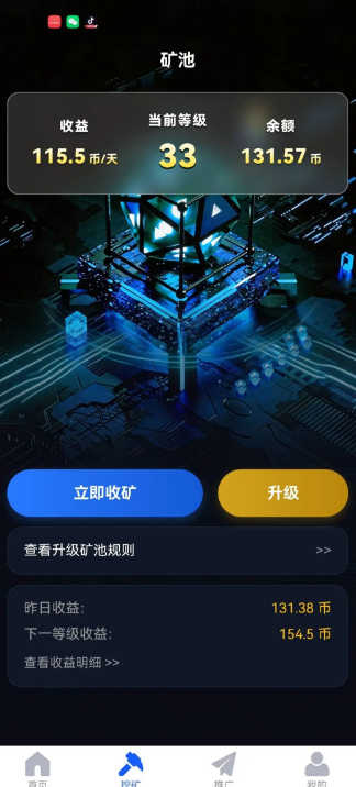 点立即收矿,有余额就升级